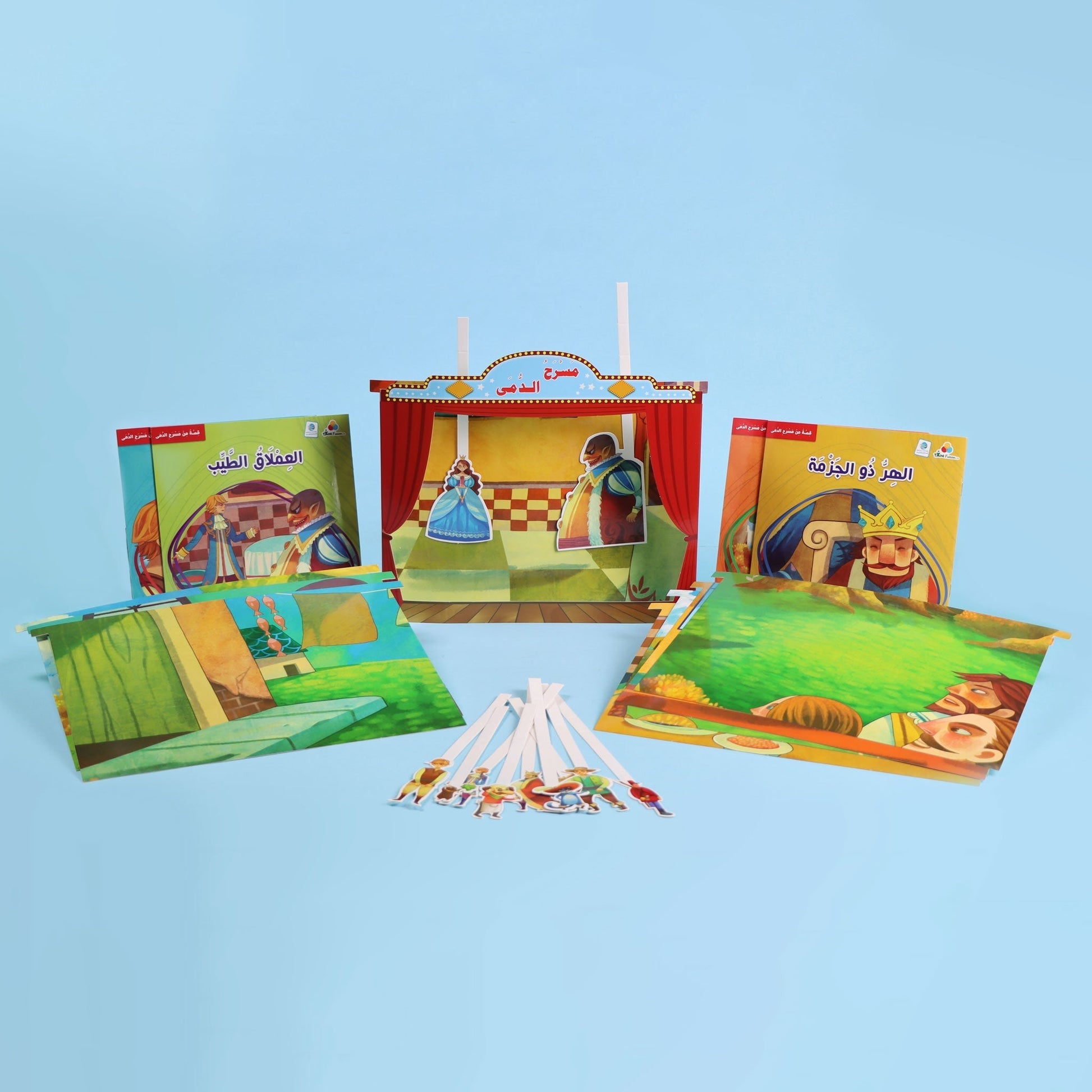 تتألف حقيبة مسرحة الدمى من مسرح من الكرتون، ومجموعة من القصص والخلفيات المتنوعة، والشخصيات الكرتونية التي تناسب أحداث القصص لتجسيدها.