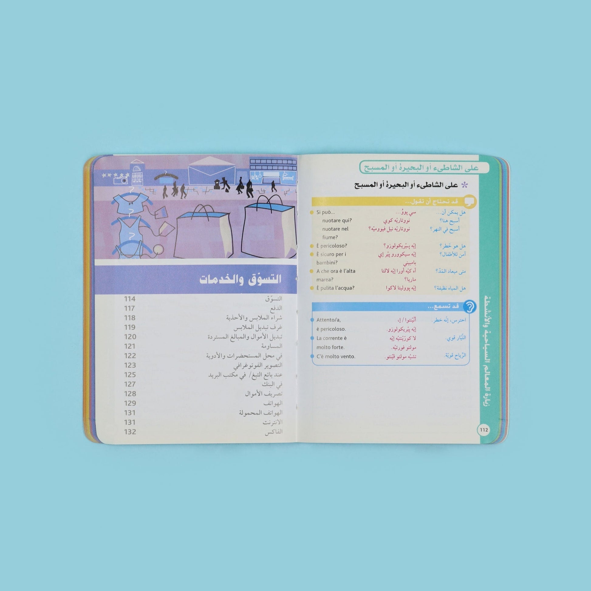 • فضلاً عن ذلك، يتميز هذا الكتاب بسهولة استخدامه، ويتضمّن نصائح للسّفر وإرشادات لاستخدام اللّغة، بالإضافة إلى قاموس مصغّر مزدوج.