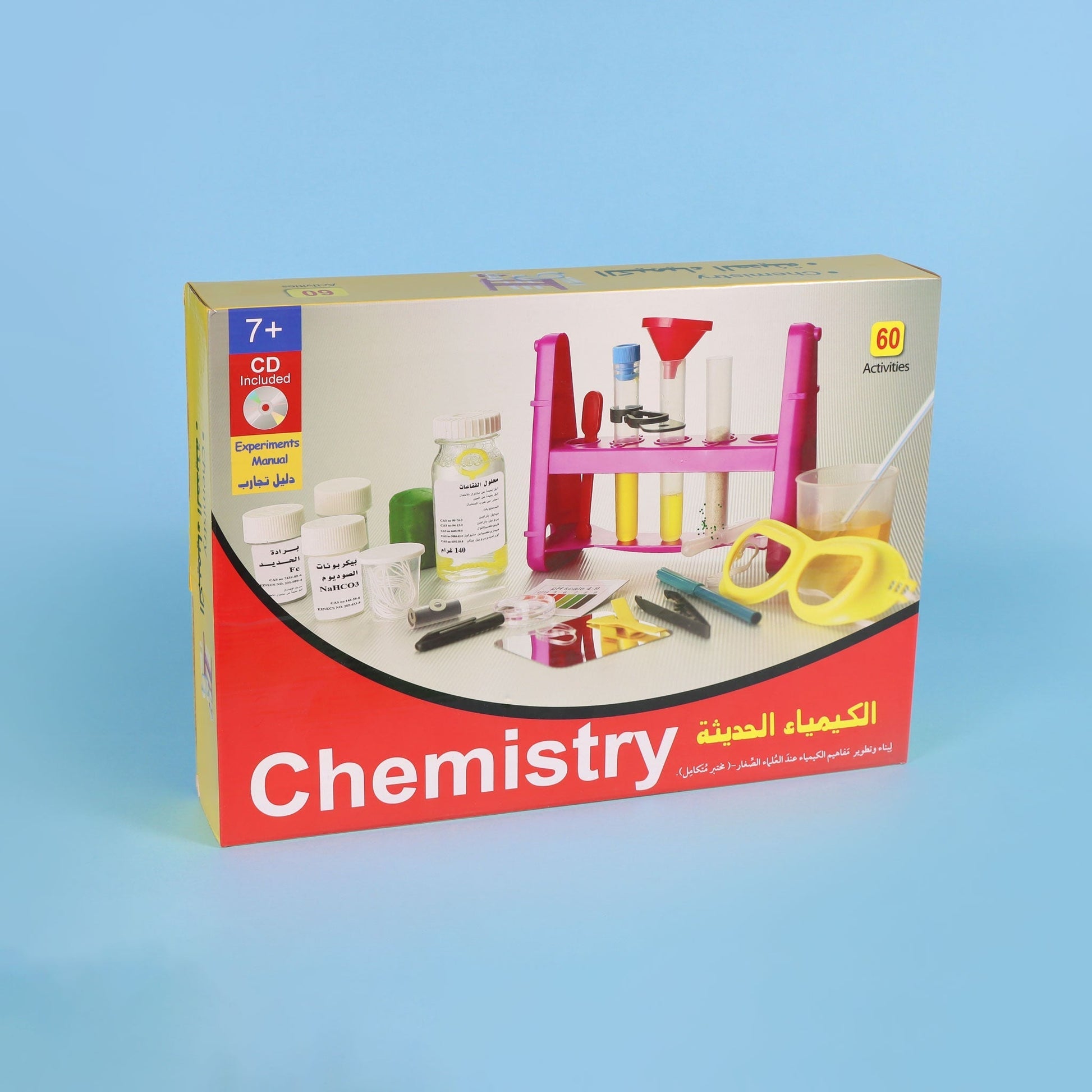 • تحتوي هذه المجموعة الخاصة بالكيمياء على كل الأدوات اللازَّمة للقيام بأكثر من 60 تجربة.